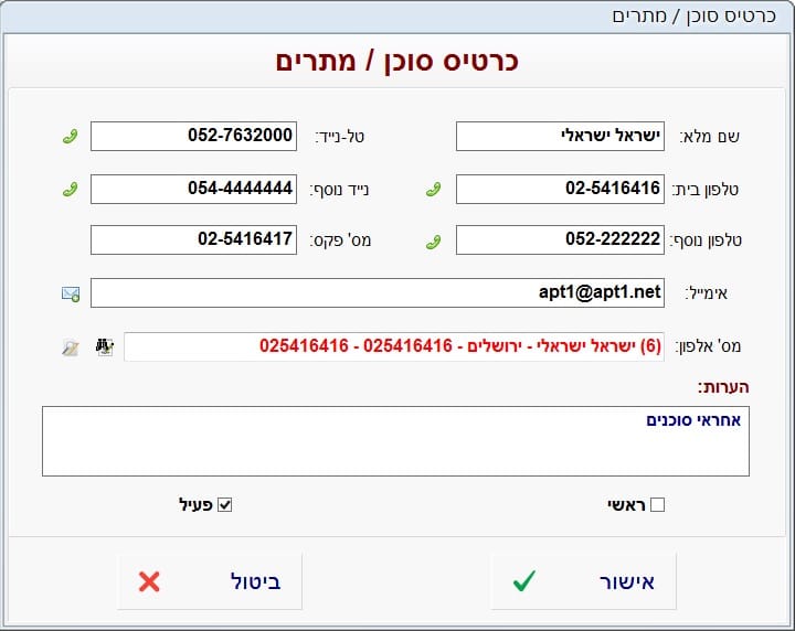כל תנועה שתקלט על שם זה, תקלט כברירת מחדל עם שם הסוכן/מתרים שהוגדר בכרטיס האלפון