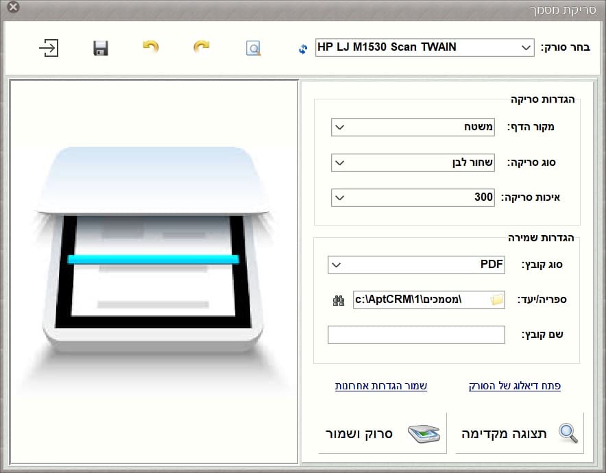 ניתן לסרוק מסמכים דרך המערכת, ישירות לכרטיס האלפון ולפעולות רבות במערכת. נתיב שמירת הקבצים נוצר באופן אוטומטי במערכת בתיקיית מסמכי הכרטיס.
