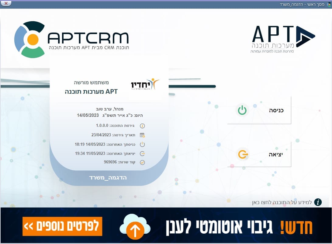 במסך הראשי של התוכנה תוכלו לצפות בנתונים פרקטיים לעבודה: